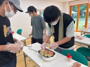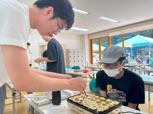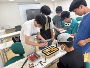 夏の厳しい暑さもあり、こまめな水分・塩分補給も取りながら室内でできるたこ焼きは安心ですね。